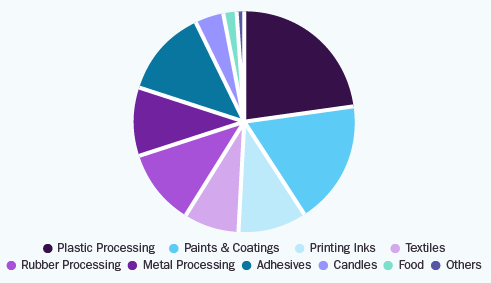 بازار این محصول توسط کاربردهای آن در صنایع مختلف مانند لاستیکها، پلاستیکها، جوهرها، پوششها، چسبها و پلیمرها هدایت میشود. علاوه بر این، استفاده از این محصول در صنعت چسب نیز افزایش یافته است، که انتظار میرود به طور قابل توجهی به رشد بازار کمک کند.